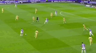 比赛第73分钟,登贝莱传球被断,主队快速反击,普拉塔包抄破门,巴拉多利德3-0巴萨。