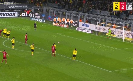 90+9'多特角球最后一攻,科贝尔也插上争顶,结果被拜仁打反击,但托利索远程推射空门却打偏了