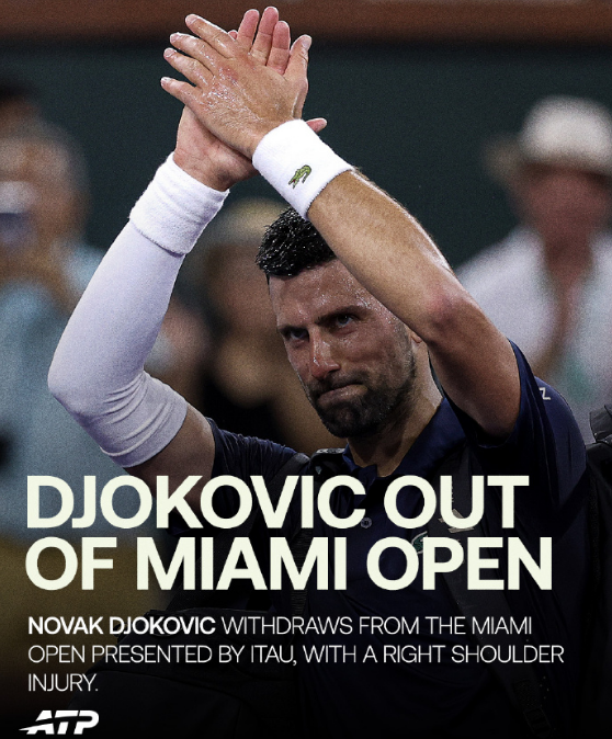 如今德约科维奇宣布因为右肩伤势退出迈阿密大师赛也就不令人意外,德约科维奇本赛季至今单打战绩为7胜2负。